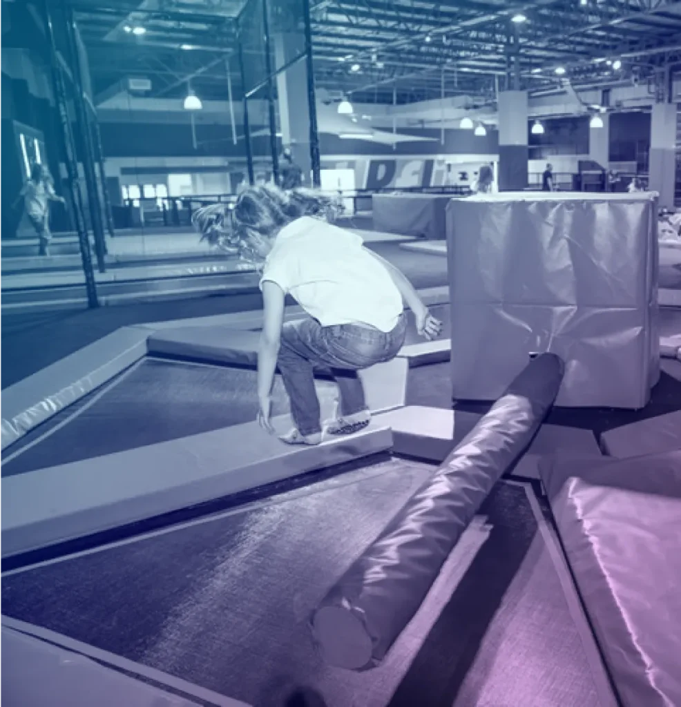 Explora un emocionante desafío de saltos y equilibrio entre plataformas flotantes. Pon a prueba tus habilidades mientras navegas por las alturas en esta aventura única dentro de nuestro parque de trampolines.